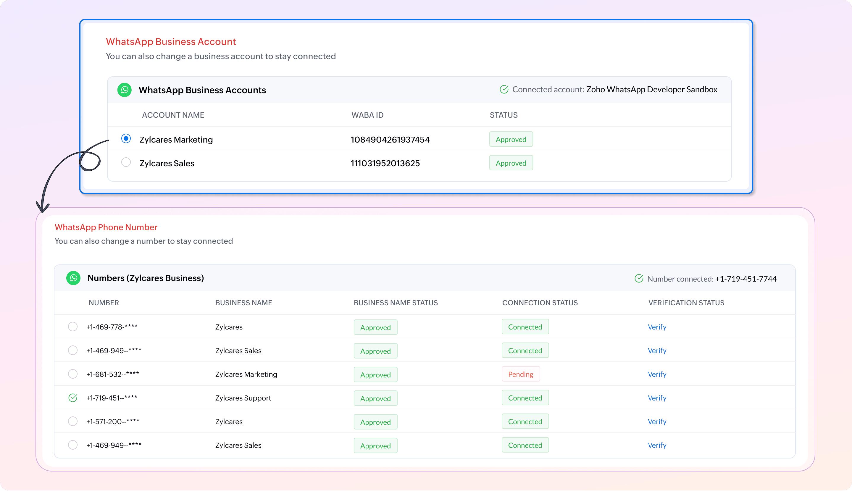 Supported multiple WhatsApp Business Accounts (WABA), allowing businesses to create channels for different brands or departments. Each business unit can manage its communication channels with a dedicated WABA to ensure efficient operations. Businesses with multiple WhatsApp accounts can set up and link as many channels as needed to provide a centralized platform and shared access to customer data for seamless information flow and operations.
