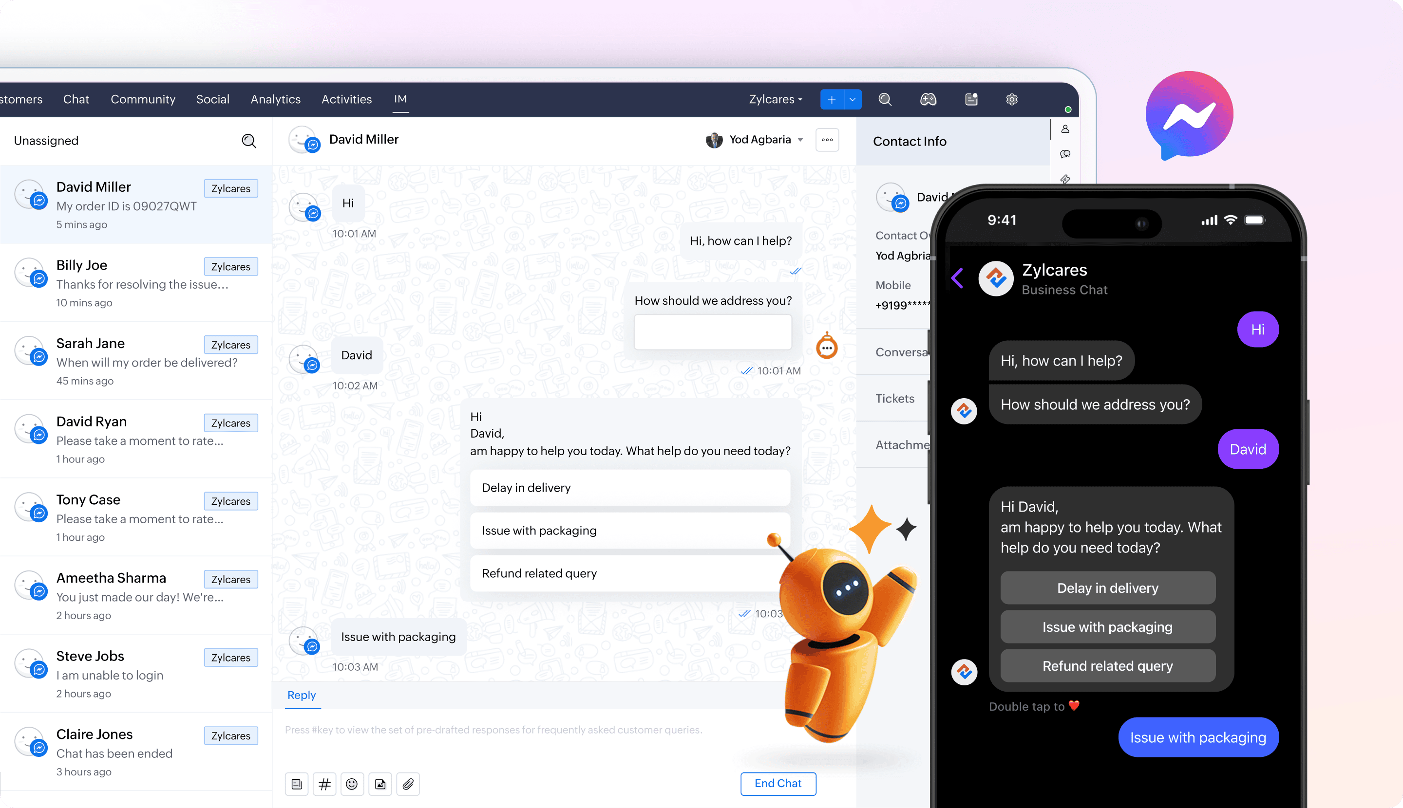Integrating Facebook Messenger with Zoho Desk allows businesses to efficiently manage customer communication through Meta's Facebook business pages. Once set up, the Messenger platform enables seamless interactions between customers and the business via various entry points, including Facebook Posts, the Meta business page, and the business's website.