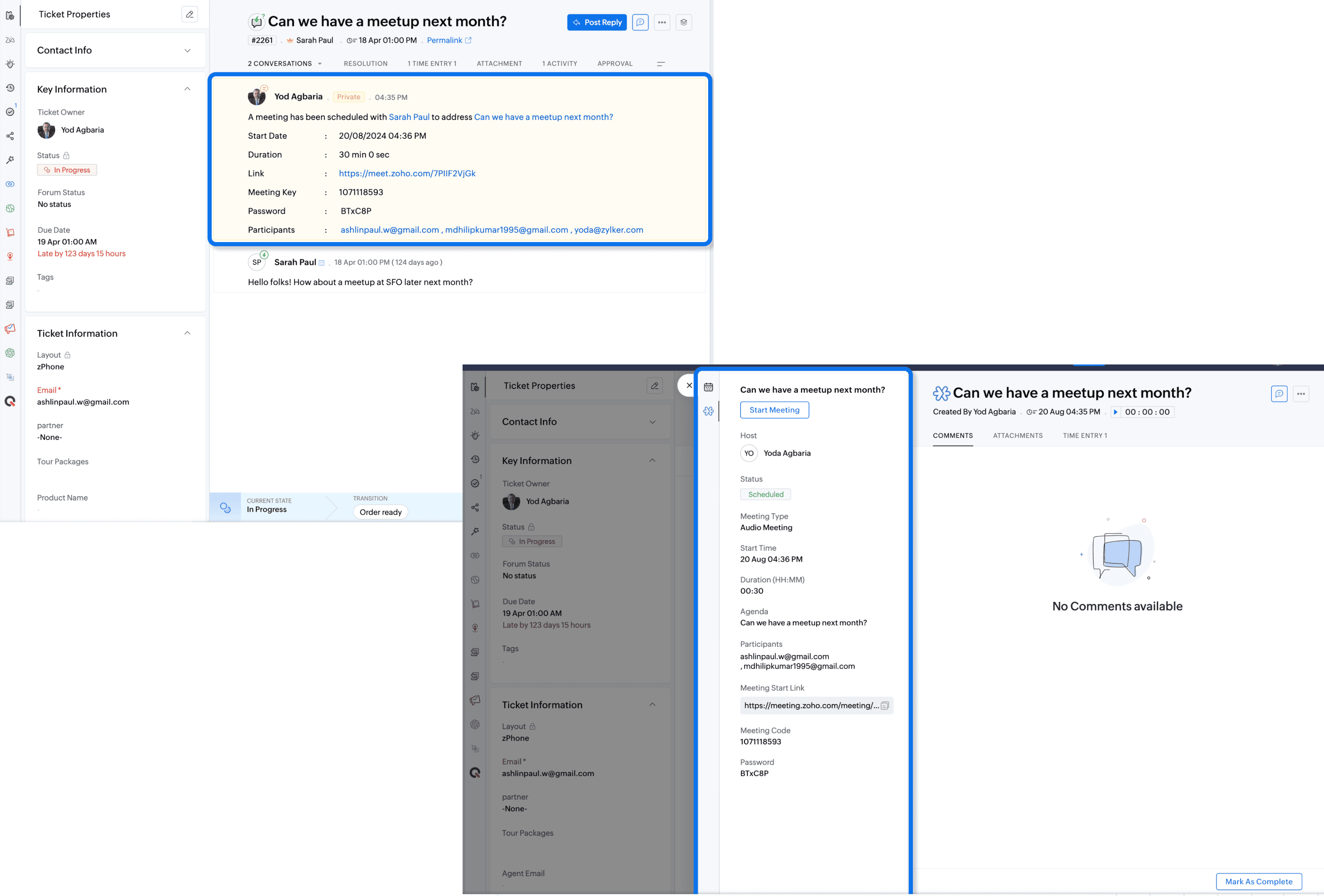 Scheduling meetings from the ticket interface with Zoho Meeting integration