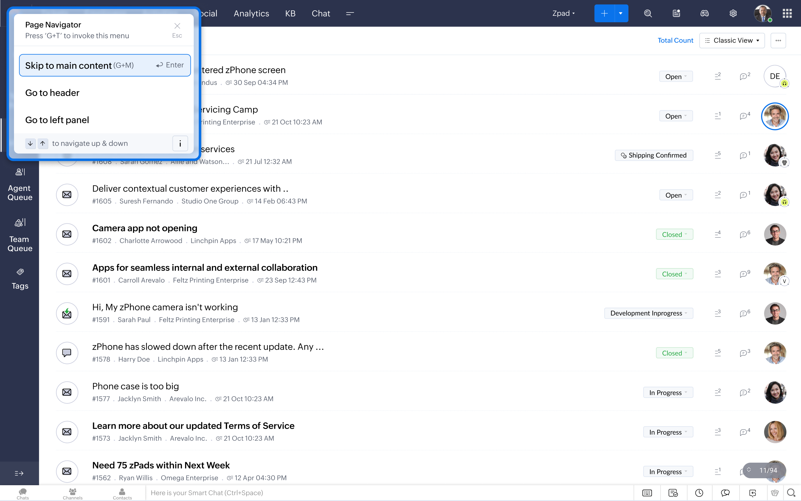 Zia can detect patterns in existing tickets and use the information to auto-update field values in incoming tickets. This helps customer support teams maintain data accuracy, ensure data validity, and minimize manual intervention. For example, Zia can predict the severity of a ticket and assign it to the most suitable agent or team for a faster resolution.