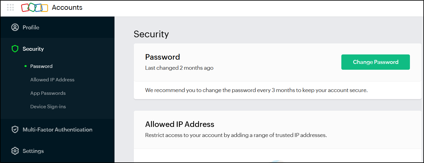 The Allowed IP address is an IP address or a range of IP addresses you can set up for your Zoho account to restrict account access. Once configured, you will not be able to sign in to your account via a different IP address.