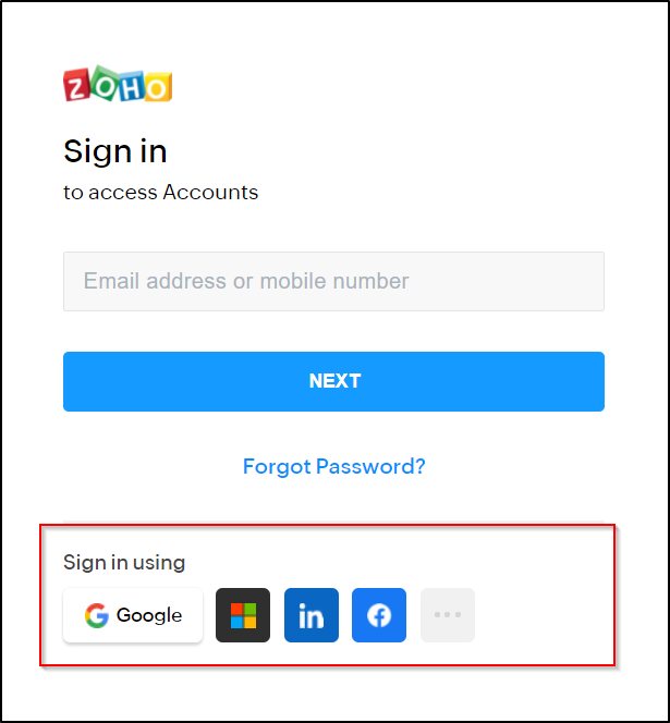 You can link multiple third-party service accounts to your Zoho account to sign in.
