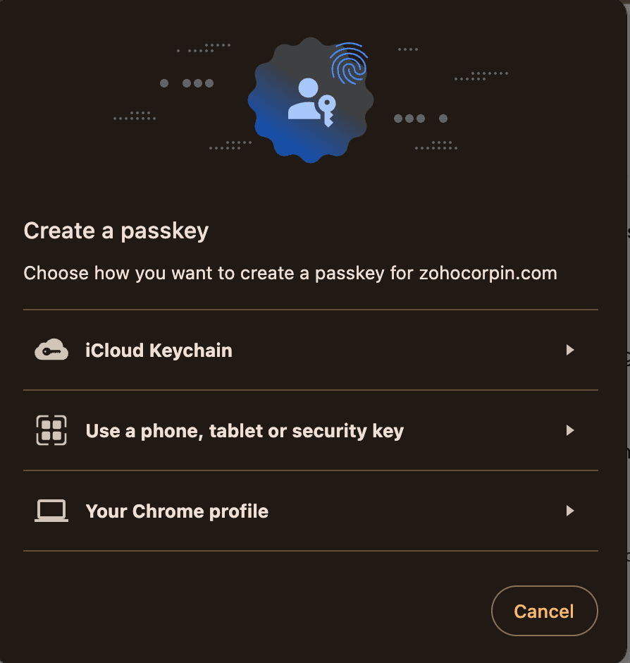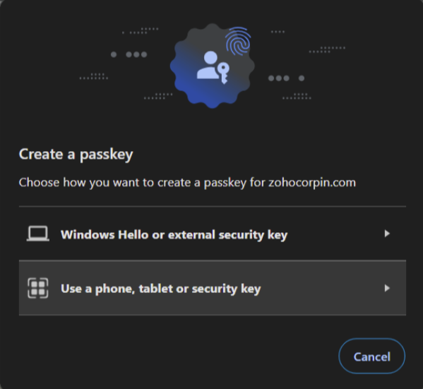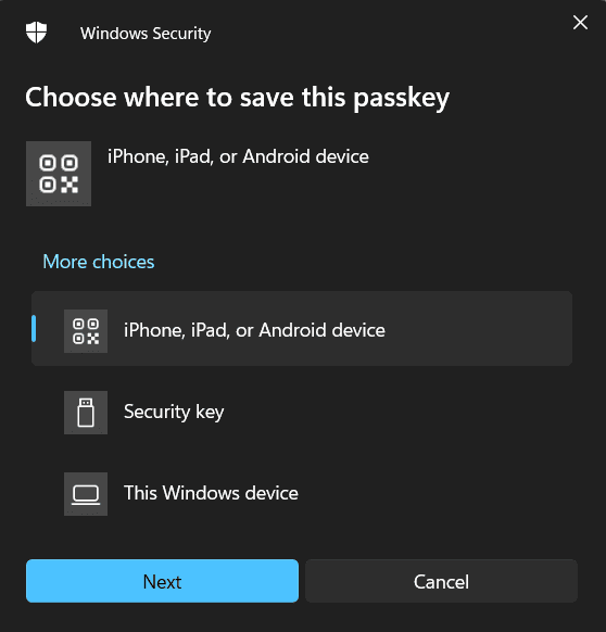 OS | Could Sync (Use same Passkey across devices) | Local browser only (Passkey is specific to the device's browser) | External devices except security key (Separate Mobile devices will be used for Passkey) |