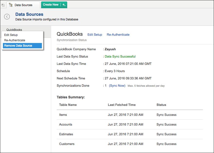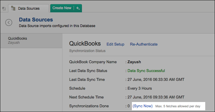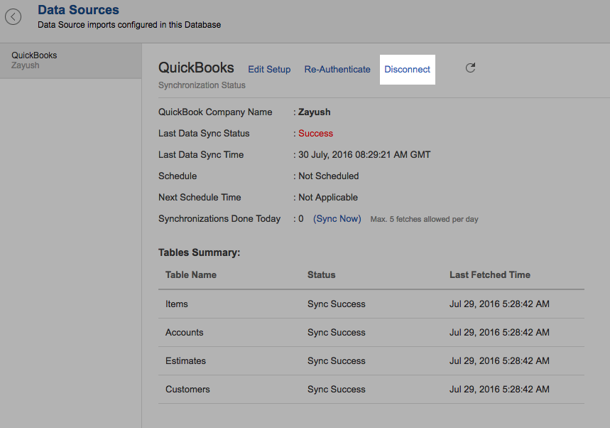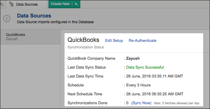 You can view detailed information about the data synchronization that happens between QuickBooks and Zoho Analytics by following the steps given below.