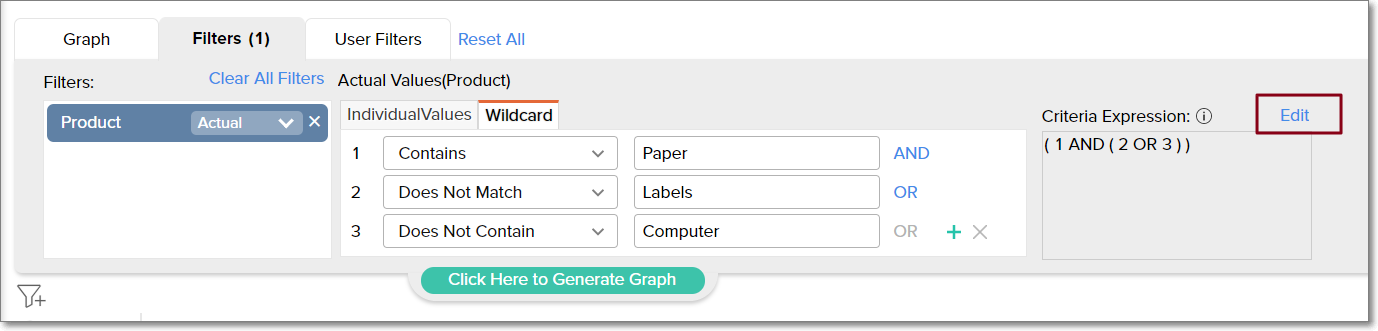 When there is a combination of AND/OR conditions, the order of execution will be defined by sequence in which the conditions are added. The order of execution can be modified by clicking the Edit option in the Criteria Expression section. Modify the criteria as required, and click OK.