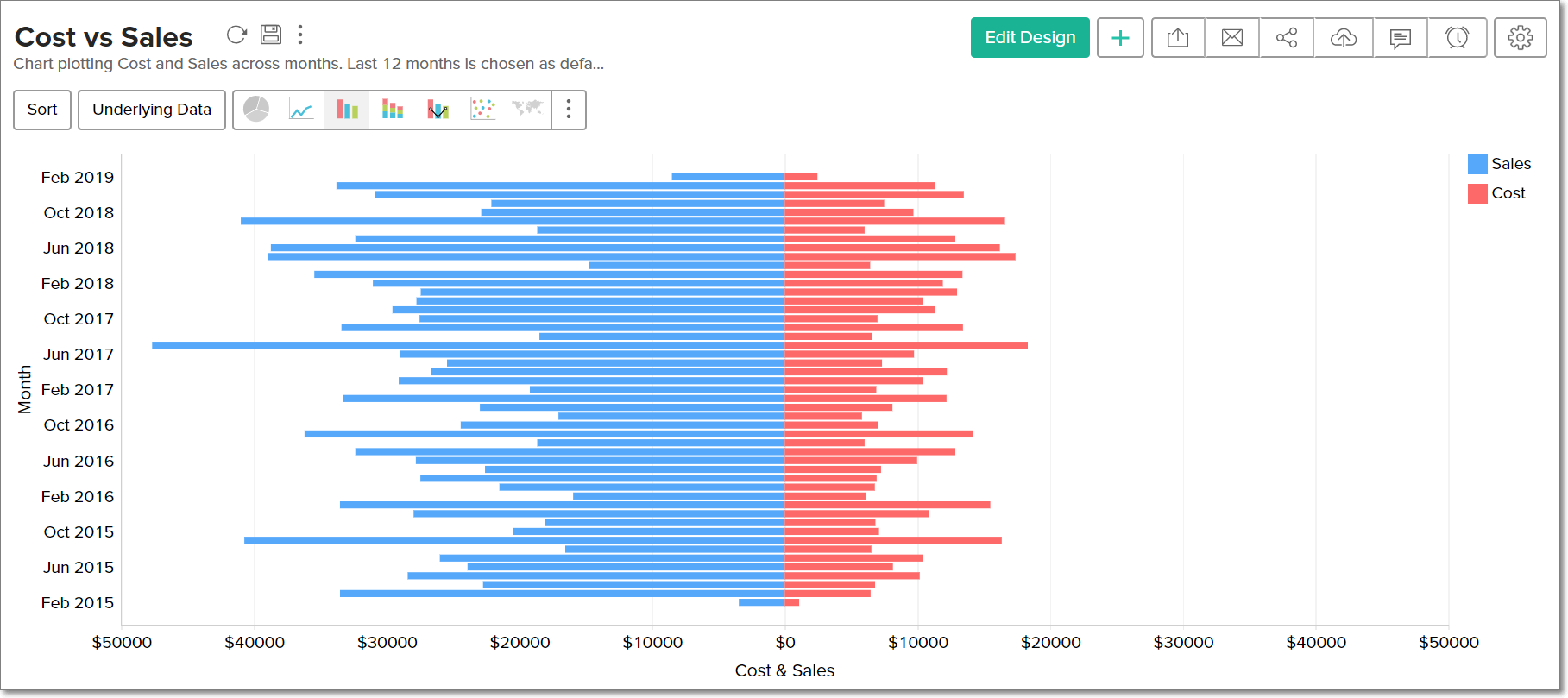 You can create butterfly charts in Zoho Analytics in two ways: