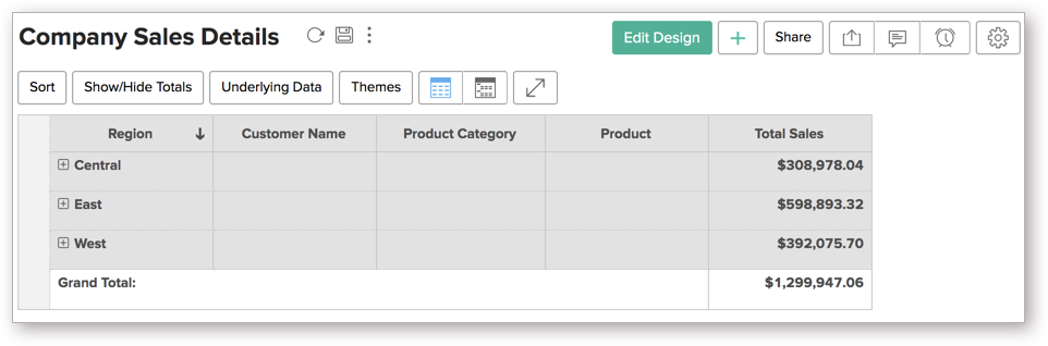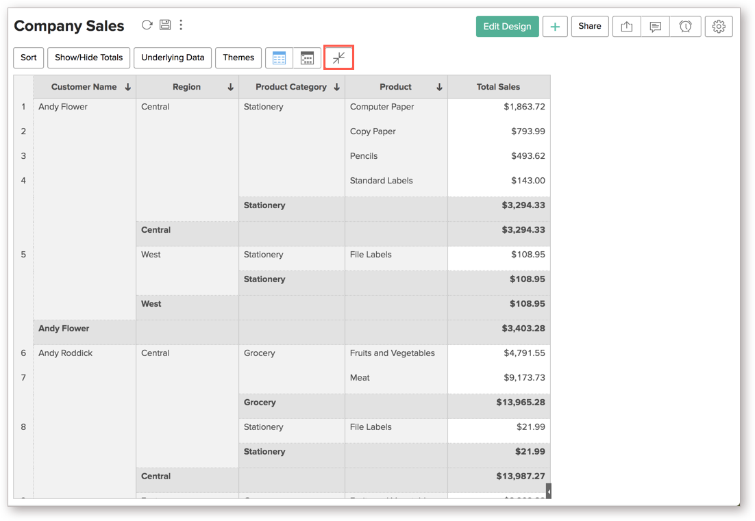 Analytics Plus allows you to expand and collapse the rows, columns and cells in your pivot views. When you create a pivot table, every row, column, and cell will be displayed automatically. However, you can choose to collapse this detailed view. Follow the steps below to do this: