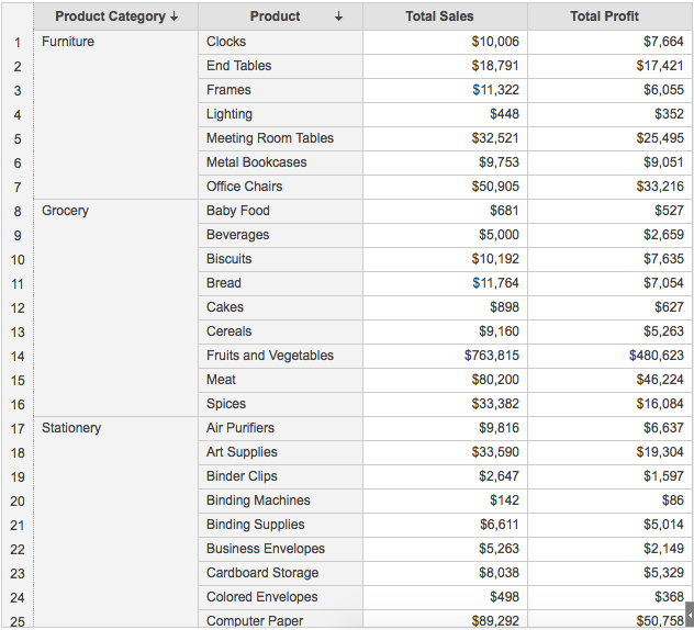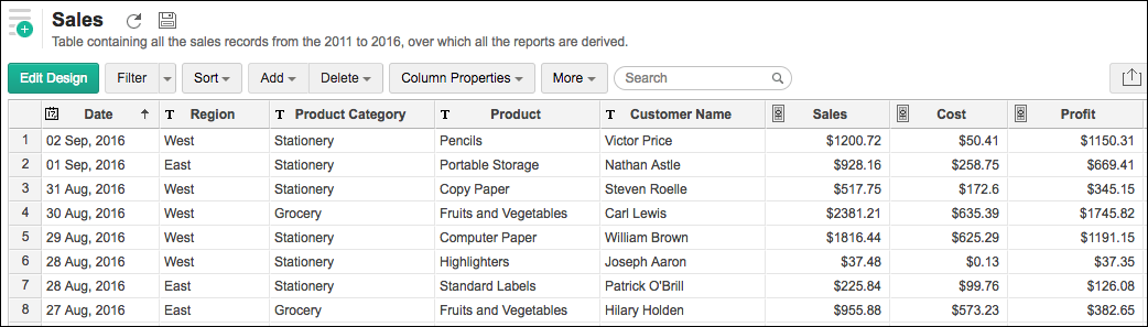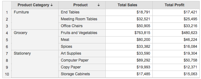 Example: Let us see how to create a simple summary view to summarize the sales of the top 10 products based on the profit obtained. We will be creating this Summary View on the Sales Table (shown below).