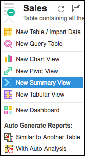 Alternatively, you can also create a new summary view by opening the corresponding table on which you want to create the view and then clicking New > New Summary View option in the toolbar.