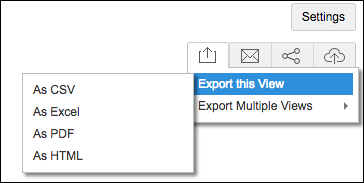Zoho Analytics allows you to export the summary view that you have created into various file formats like CSV, PDF, XLS or HTML.