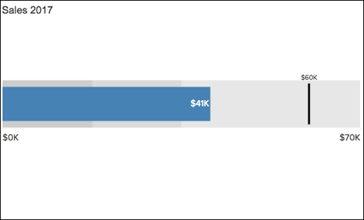 A Bullet chart is best suited to highlight a metric and compare it with a target value. You can also specify qualitative ranges of performance, such as poor, satisfactory, and good. The qualitative ranges are displayed as varying intensities of a single hue.