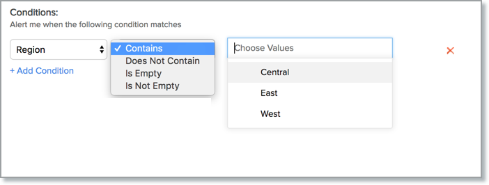 This option allows you to display an alert within the Zoho Analytics application. You can send emails to notify the administrators, the workspace administrator and the shared users of the report using the corresponding checkboxes.