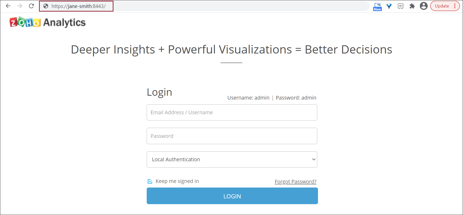 Replace <hostname> with the host name of the server on which Zoho Analytics is installed.