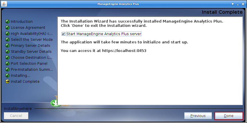 On completing the installation process, click Done in the Installation Completed screen that appears.