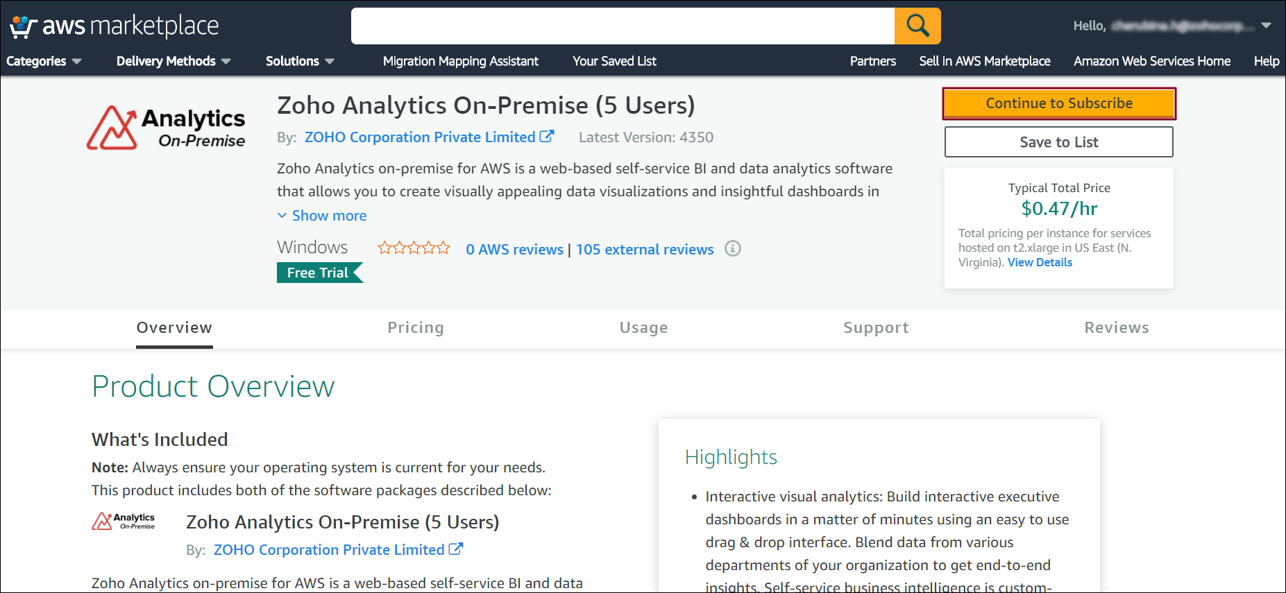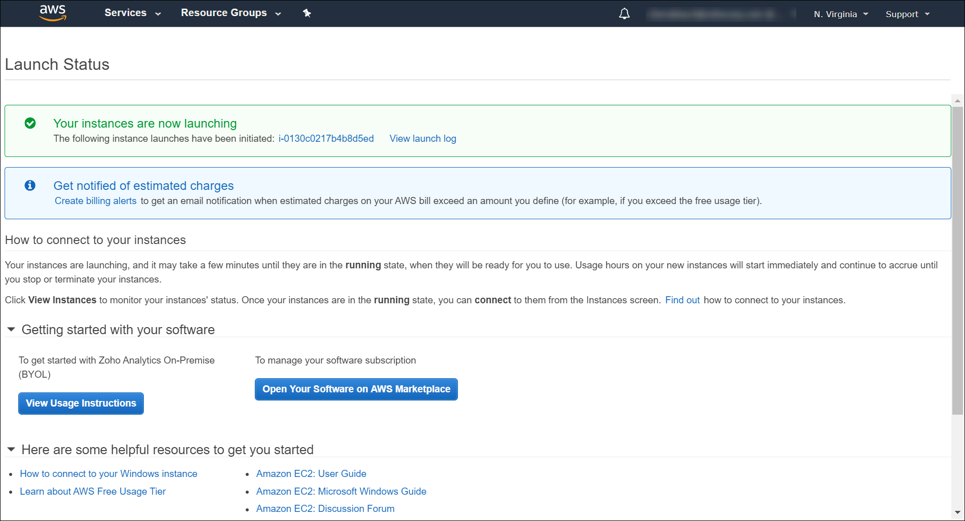 Zoho Analytics On-Premise is successfully deployed on your AWS marketplace. You may need to wait for a few minutes for the instance to be ready.