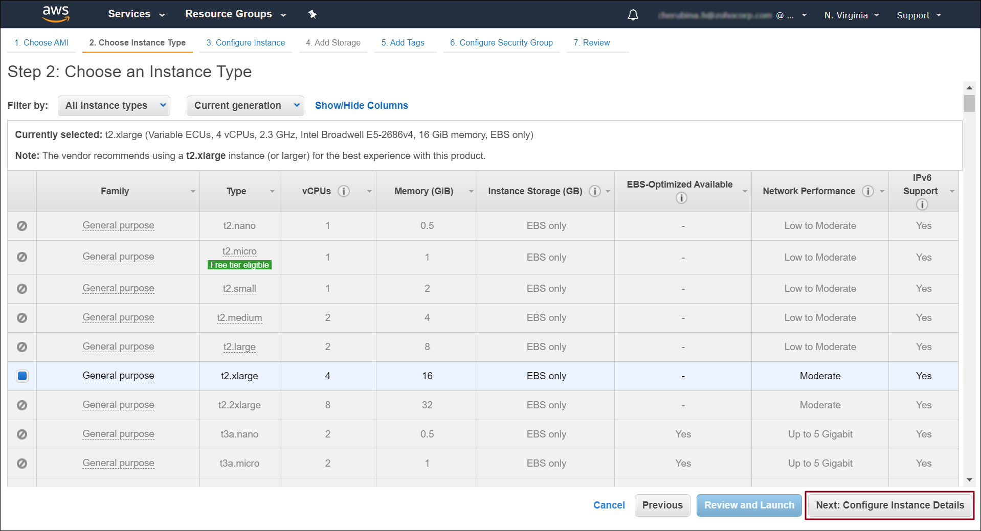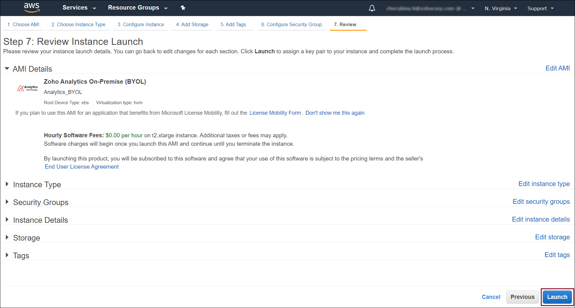 Configure the Instance details per your requirements, add the required storage and tags, and configure the security group for your instance. After providing the required details, review your selection, and click Launch.
