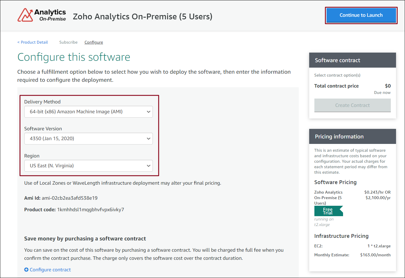 Specify the Delivery Method, Software Version, and Region, and click the Continue to Launch button.
