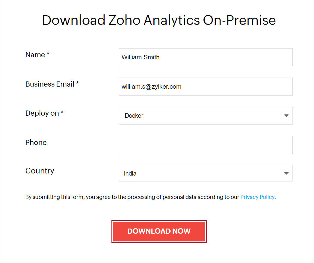 You can download Zoho Analytics On-Premise on Docker easily. Follow the steps below to download the image and run the container in Docker.