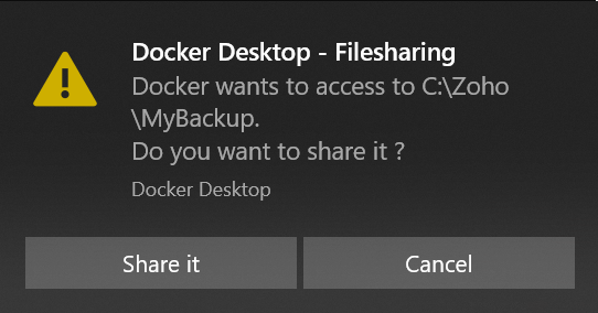Note: If you are running Docker on Windows, the below popup appears. Click Share it to proceed.