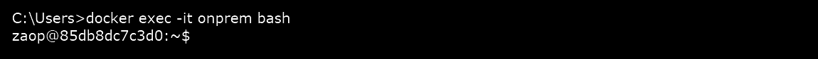 Step 6: Execute an interactive bash shell on the downloaded container using the following command: docker exec -it onprem bash