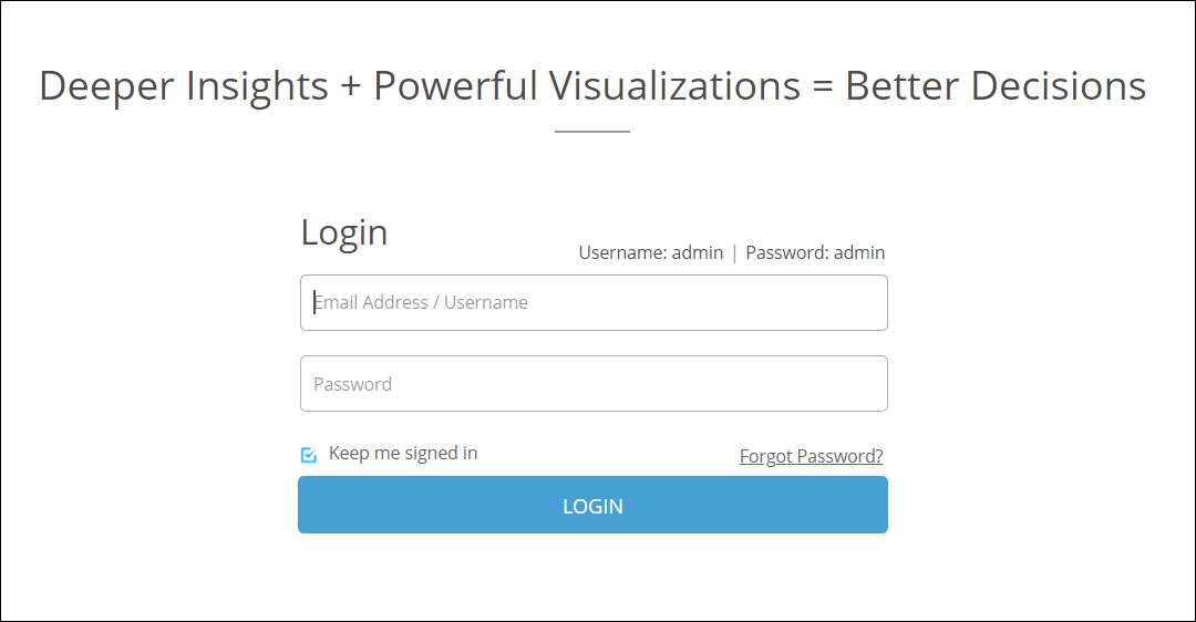 Use the following credentials in the screen that appears to login to Zoho Analytics On-Premise. Please change the default password upon login.