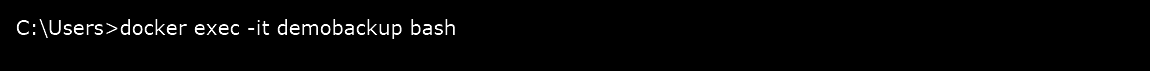 Step 1: Execute an interactive bash shell on the container using the command docker exec -it demobackup bash.