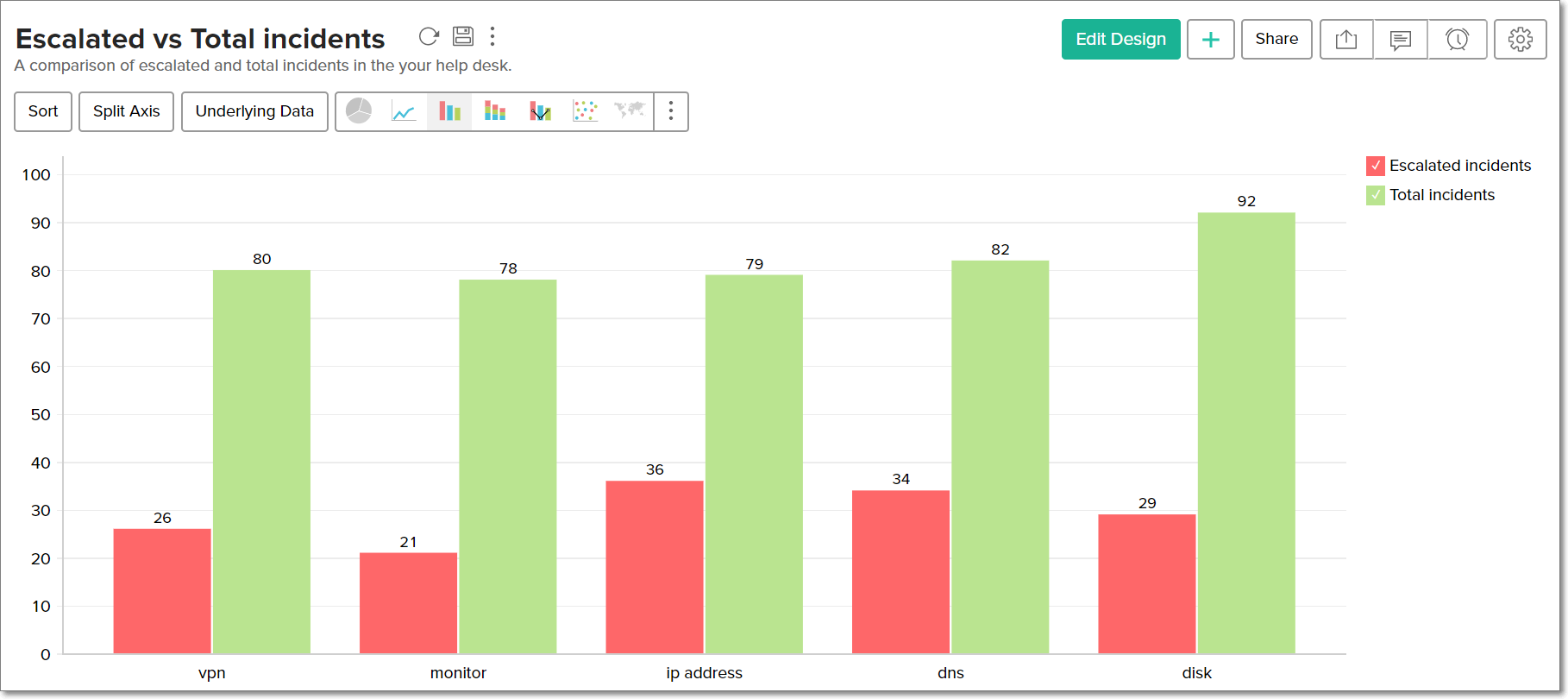 While creating reports, it's best to limit the number of points in the x- and y-axes. This improves readability, and ensures faster rendering of the report.