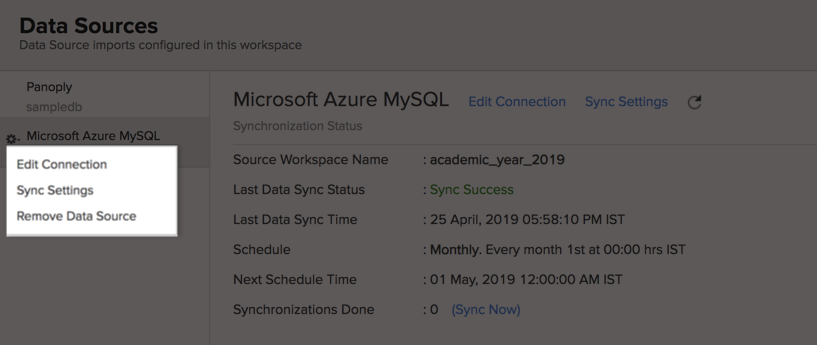 Please note that the data source connection will be removed, but the tables and the data will be retained in the workspace. As the data source connected is removed, no further synchronization will happen.