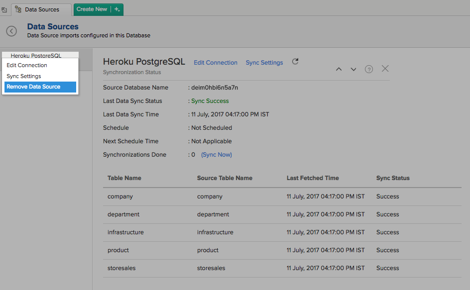 After setup, you might have to wait some time for the initial fetch to happen. This depends upon the amount of data fetched from Heroku PostgreSQL database and also the response time of the Heroku PostgreSQL server. You will receive an email notification once the import is complete. If you access the Workspace before the initial fetch, it will not display any data.