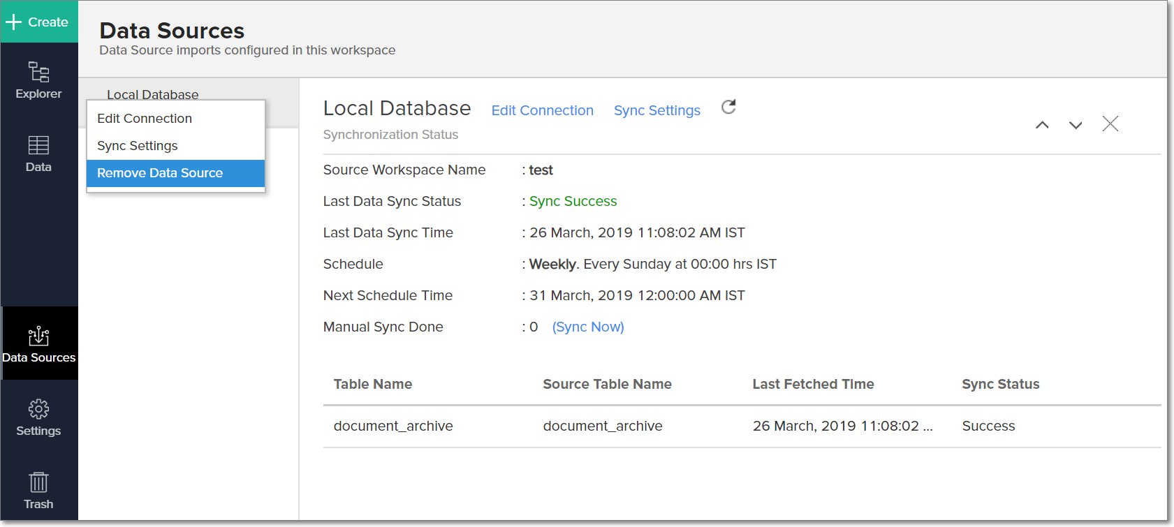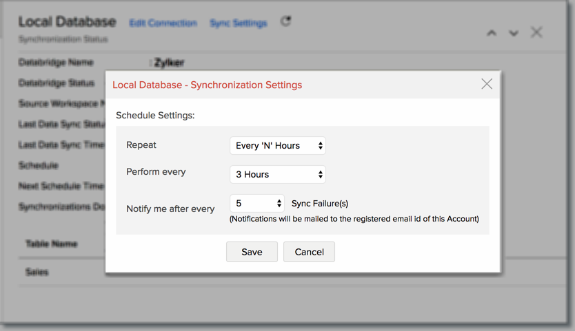 After setup, you might have to wait sometime for the initial fetch to happen. This depends upon the amount of data to be imported into Zoho Analytics and also the response time of your local database. You will receive an email notification once the import is complete. Please note that if you access the workspace before the initial fetch, it will not display any data.