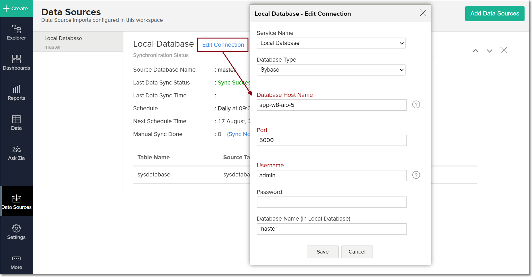 Click Save. The data from your Sybase database will be imported into Zoho Analytics in the specified intervals.