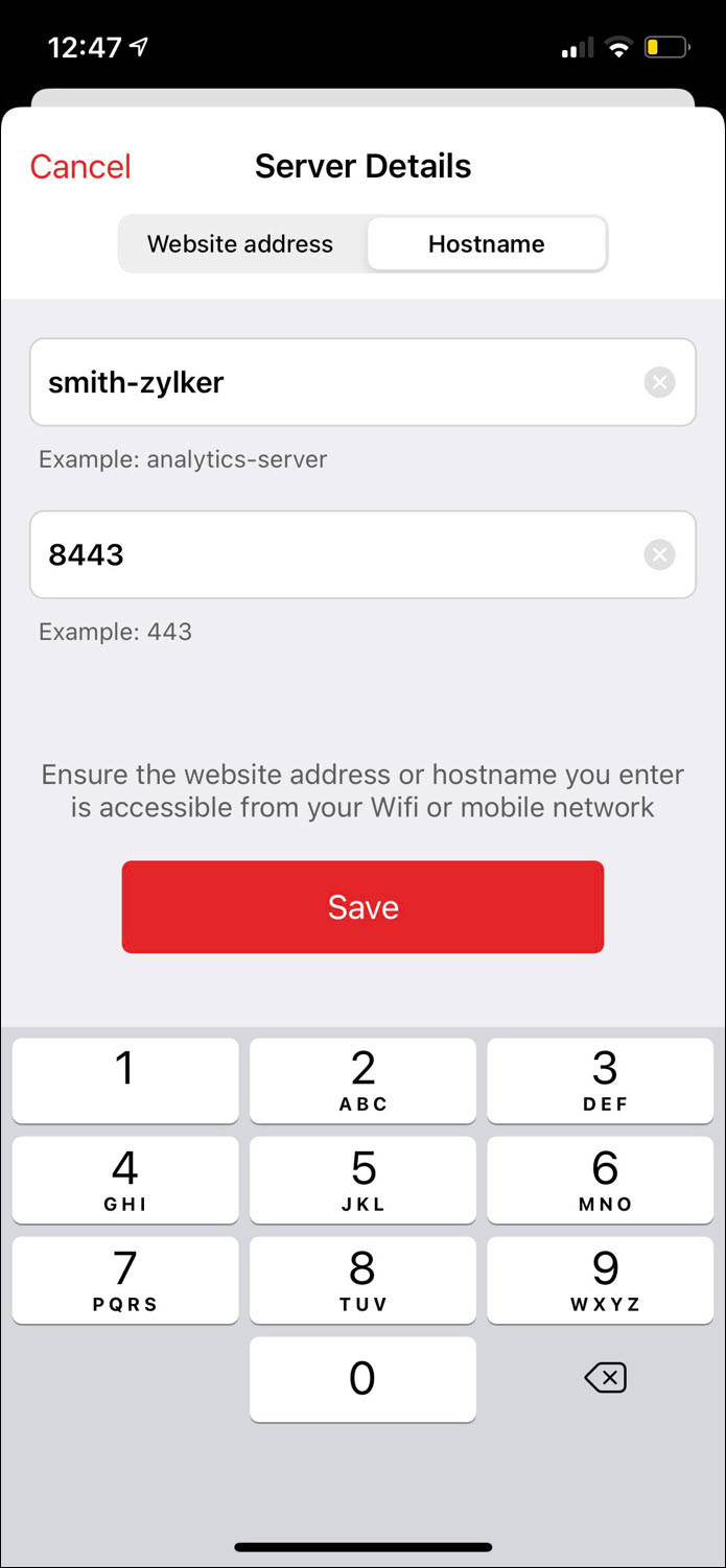 Your mobile device should be connected to a network where the Zoho Analytics On-Premise is accessible in order to access reports and dashboards. In order to use the mobile app over the internet, you have to make your Zoho Analytics On-Premise application accessible publicly over the internet.