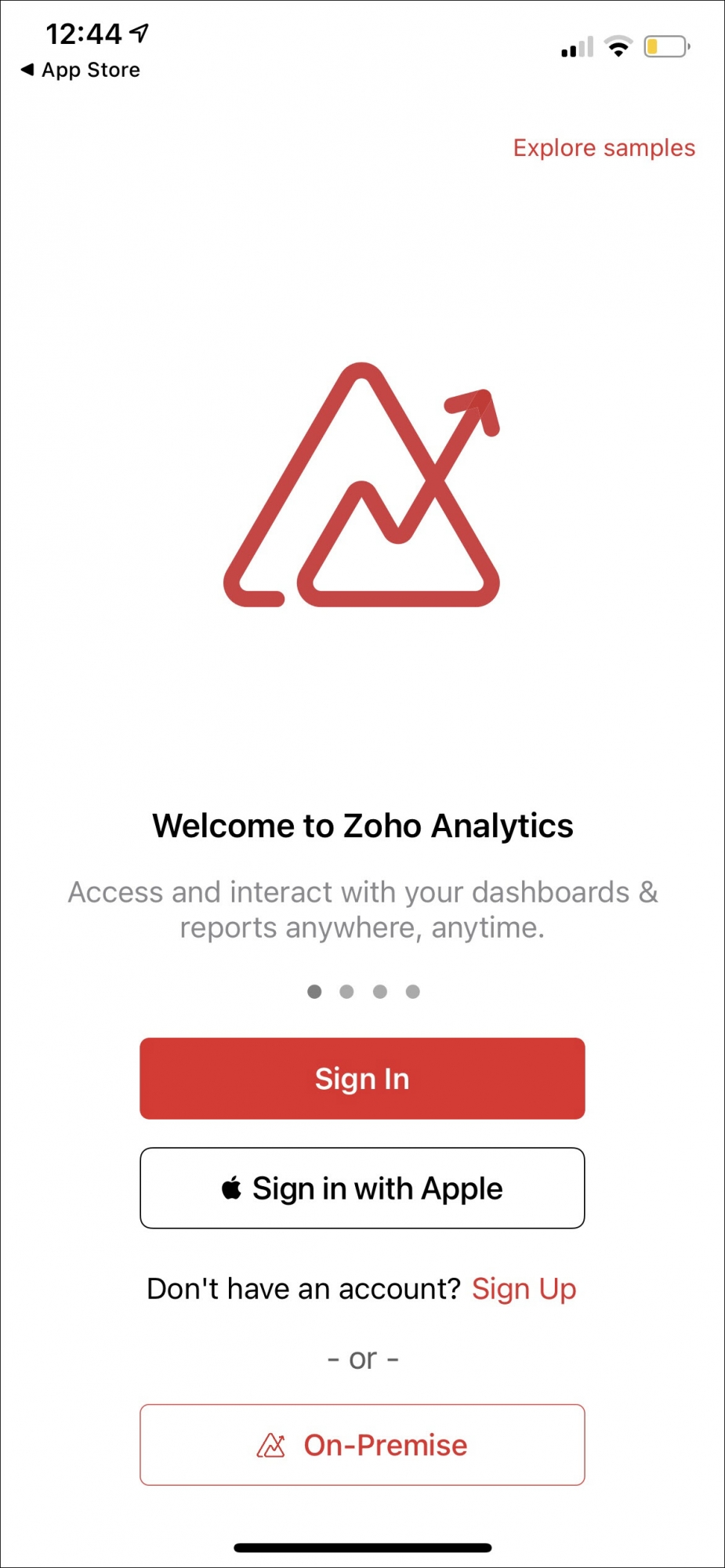 Search for the Zoho Analytics Mobile BI app on the App Store, and install it.
