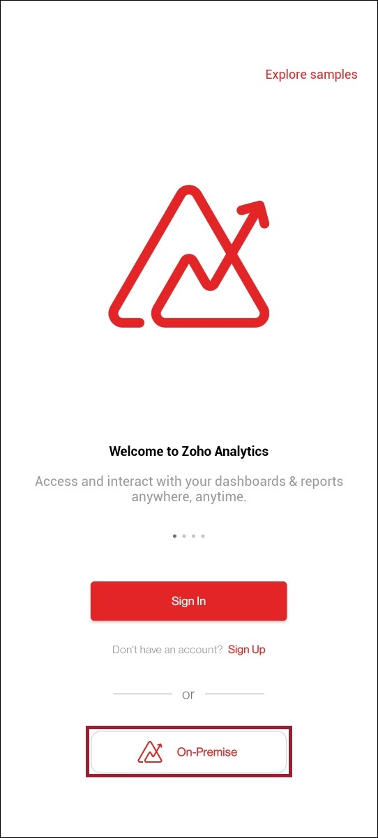 Note: Only users who have an account in Zoho Analytics On-Premise can login to this app. To download the Zoho Analytics On-Premise application, click here.