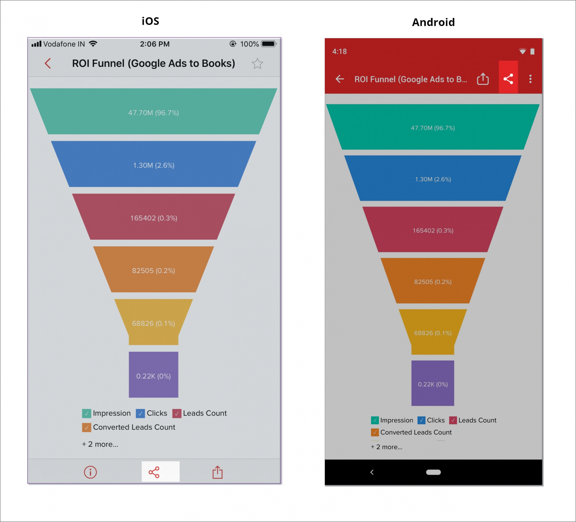 Follow the steps below to share a view from the Zoho Analytics Mobile BI app: