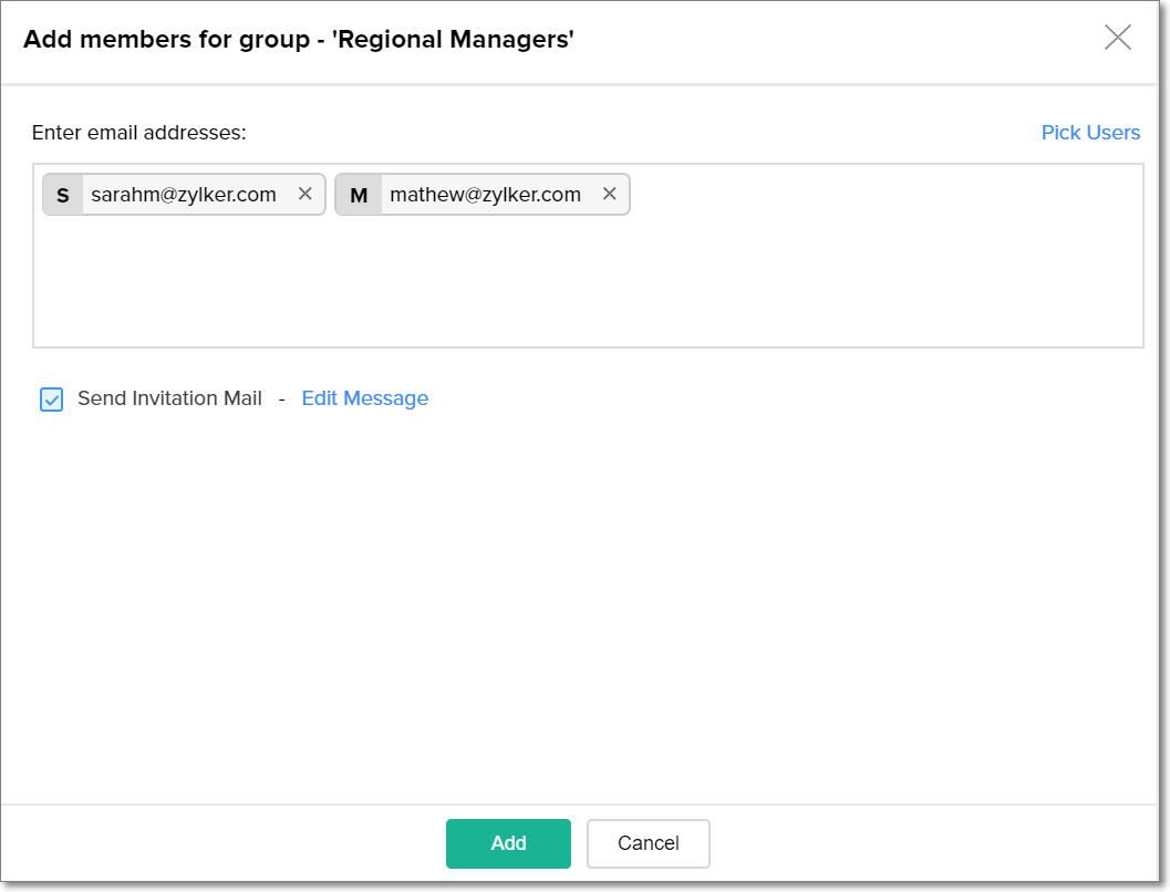 • Provide the email addresses of the required users, and click Add.