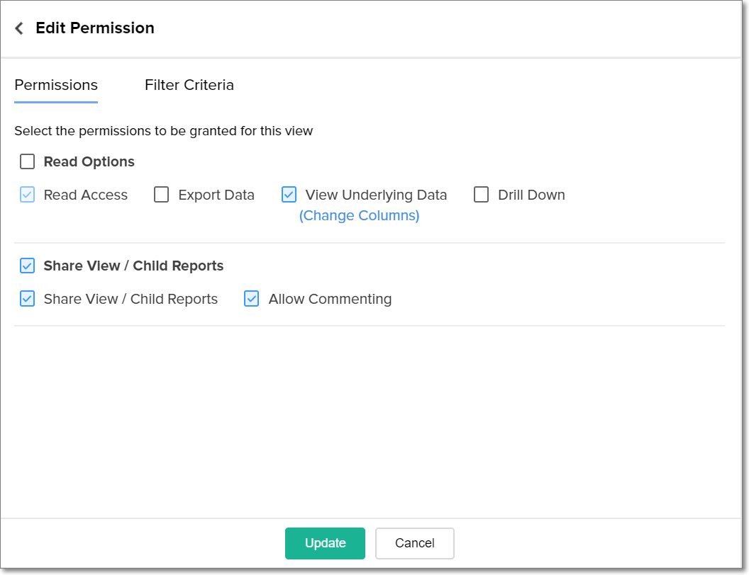 • Modify the permissions as required, and click Update.