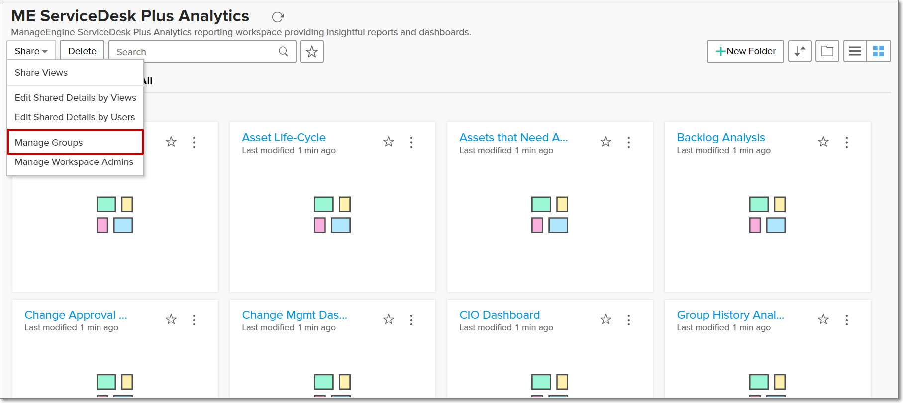 To facilitate easy collaborations, you can create Groups in Zoho Analytics that contain a set of users. Reports and dashboards can then be shared to these groups, with the required permissions and filters applied. Any number of groups can be created within a workspace, and these groups are applicable only to the workspace they are created in. Please note that only Server Administrators and Managers can create groups. To know more about the user roles in Zoho Analytics, click here