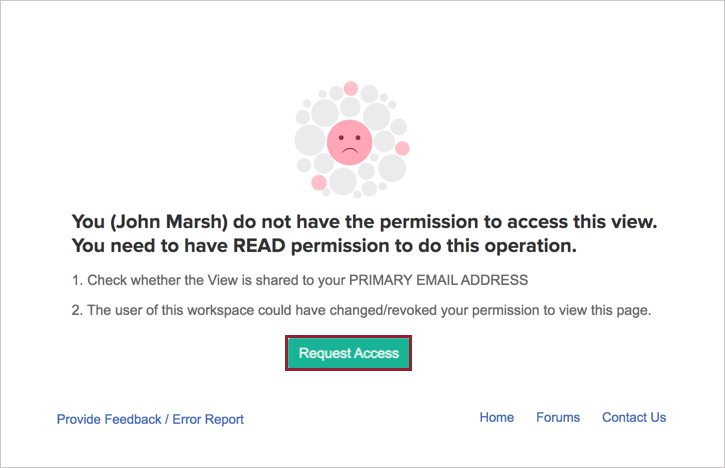 To do this, click the Request Access button that appears when you try to access a view that hasn't been shared to you. The administrators of the view will be notified, and once the required permission is granted, you will be able to access the shared view.