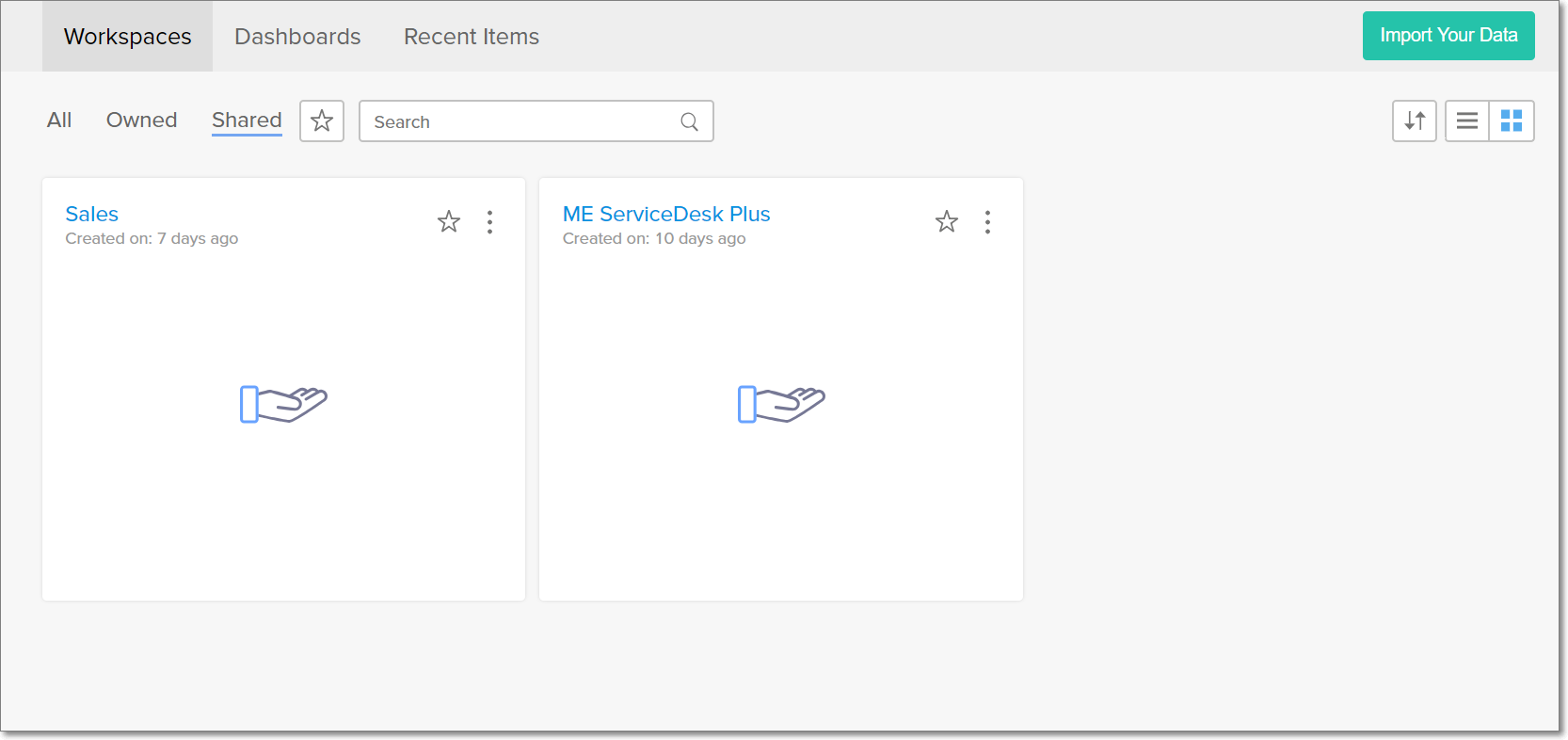 You can access the workspaces and dashboards shared to you from the Shared tabs under the Workspaces and Dashboards sections in the Zoho Analytics home page.