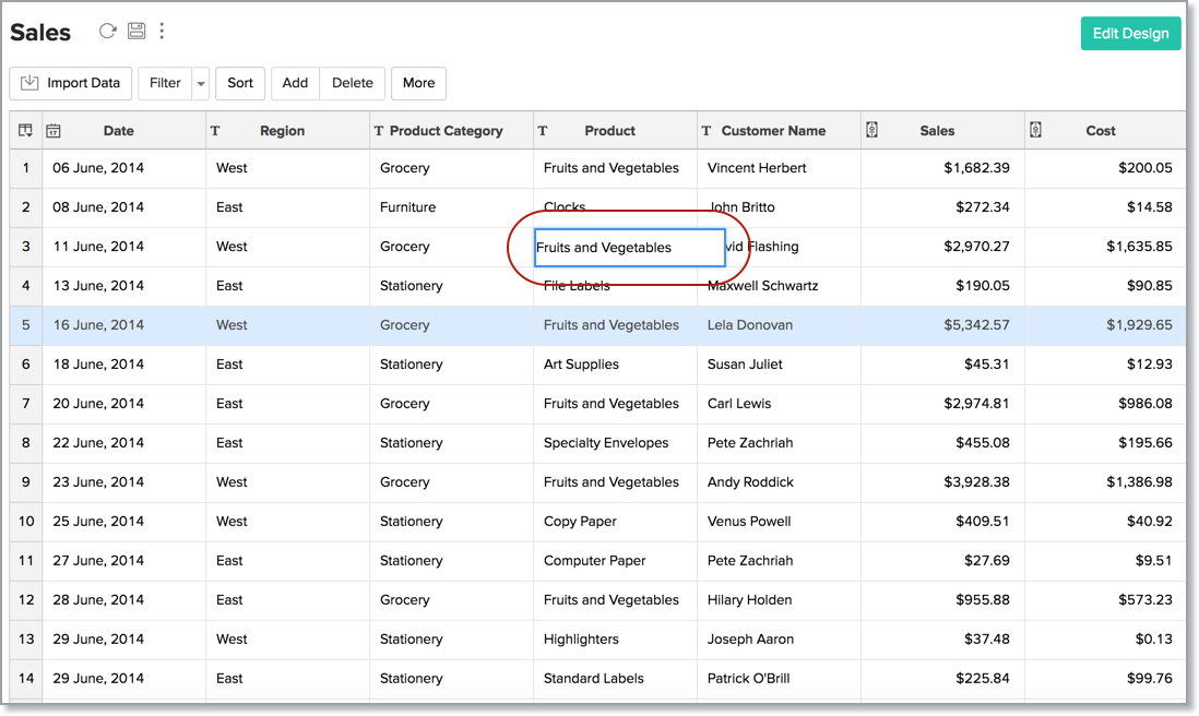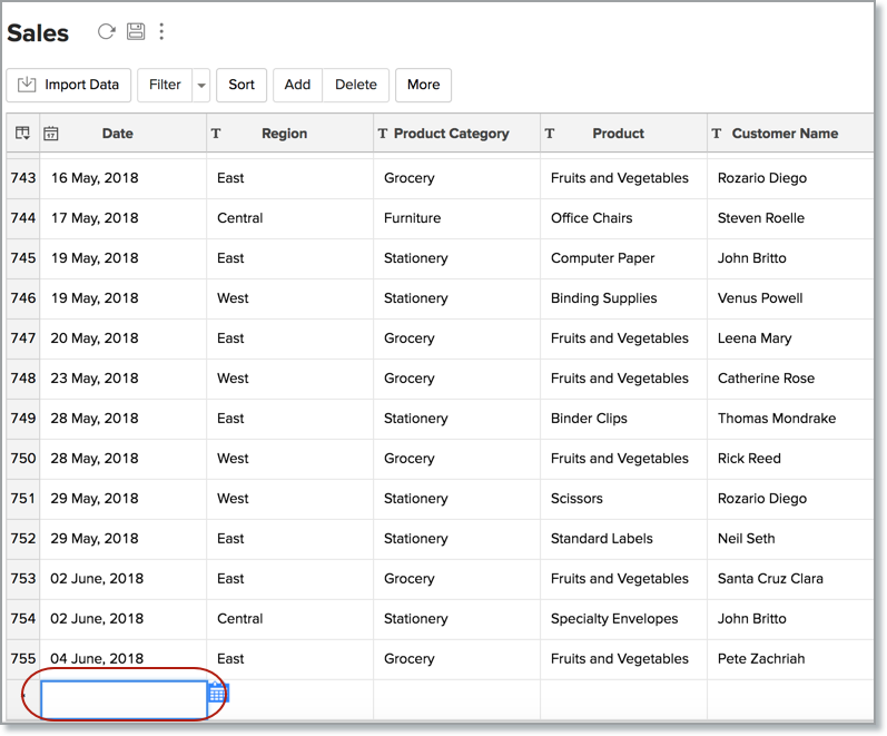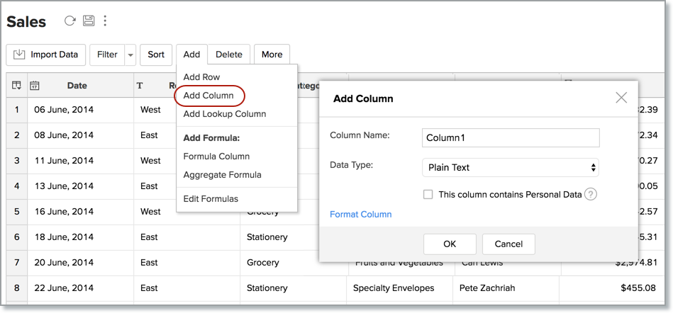 You can manipulate the data and columns in a table in Zoho Analytics, as easily as you would do in spreadsheet like Excel. You can add, modify, delete data rows as well as columns. In this chapter we will discuss about how to use these features in detail.