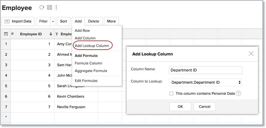 - Click OK to add the lookup column.