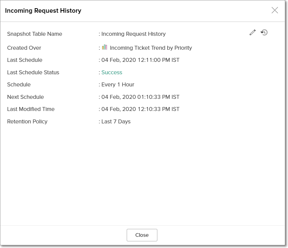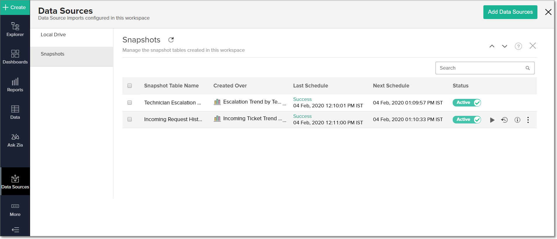 Note: Snapshot details will be maintained for 90 days in Zoho Analytics.