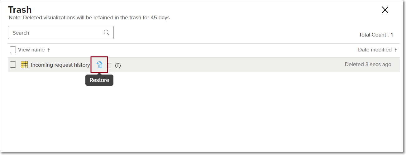 Yes, if the report over which the snapshot was created is still available. To restore the data snapshot table, click the Trash icon from the side panel, search for the required table and click the Restore icon that appears on mouse over.