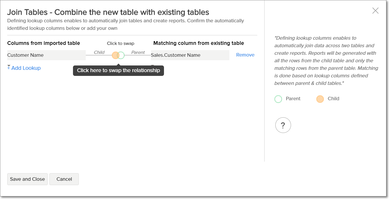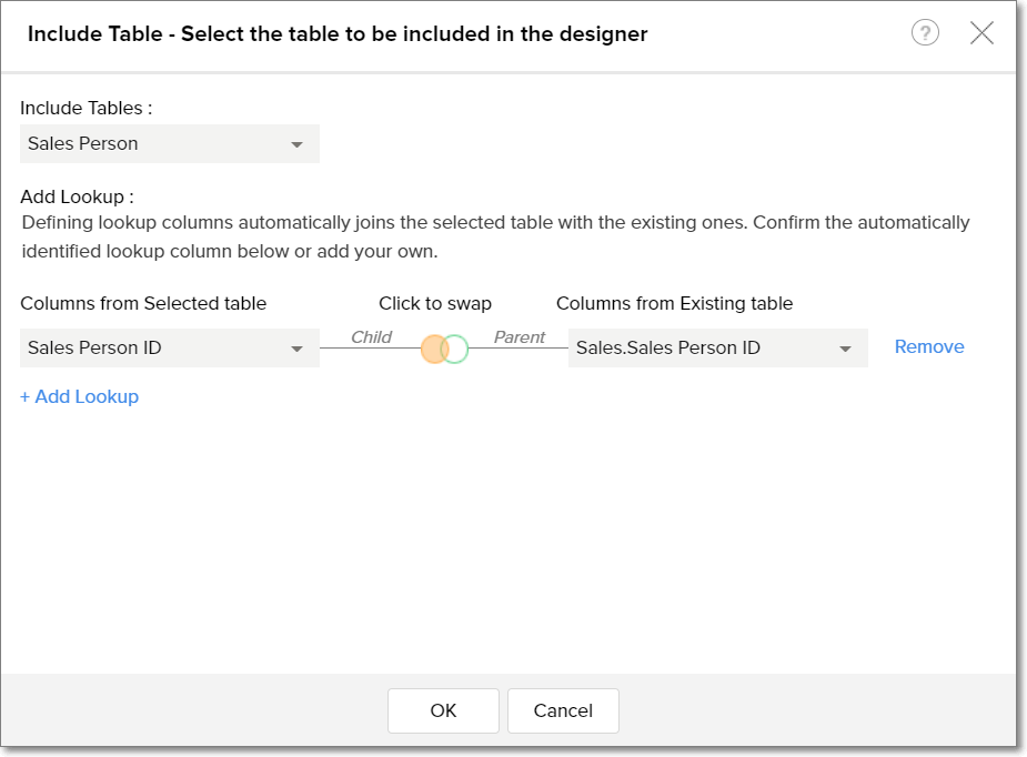 Zoho Analytics also allows you to change the lookup path that joins the tables.