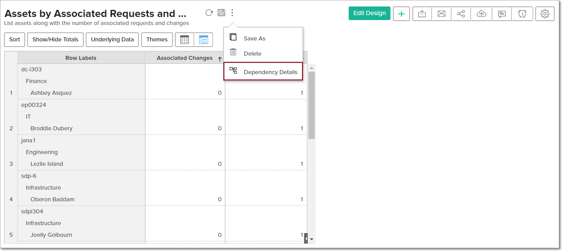Open the required query table, click the More button and select the Dependency Details option. The following options are available: