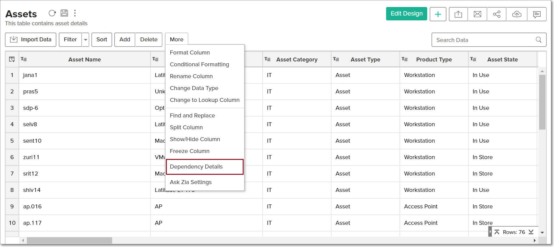 You can easily access the details of views that are dependent on a particular report, table or query table in Zoho Analytics.