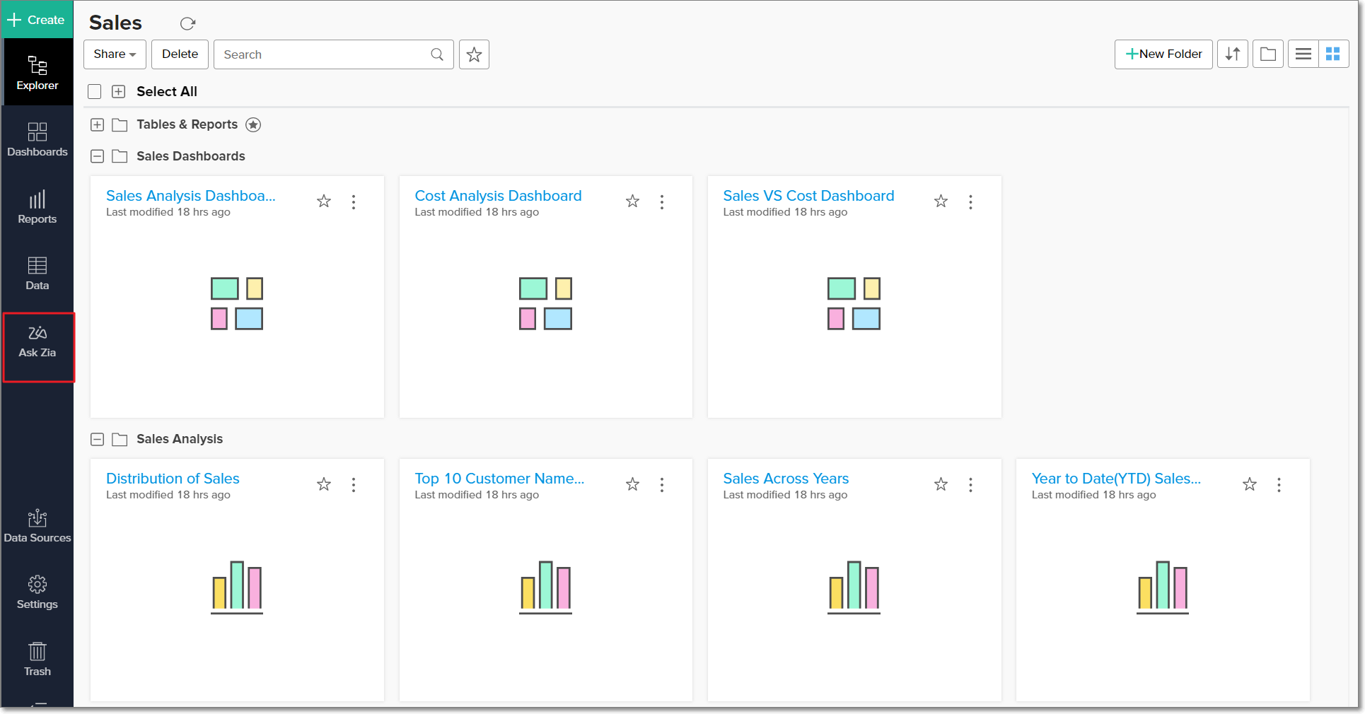 The reports generated by Ask Zia will be displayed as previews, with a detailed description and information on how the reports are plotted.