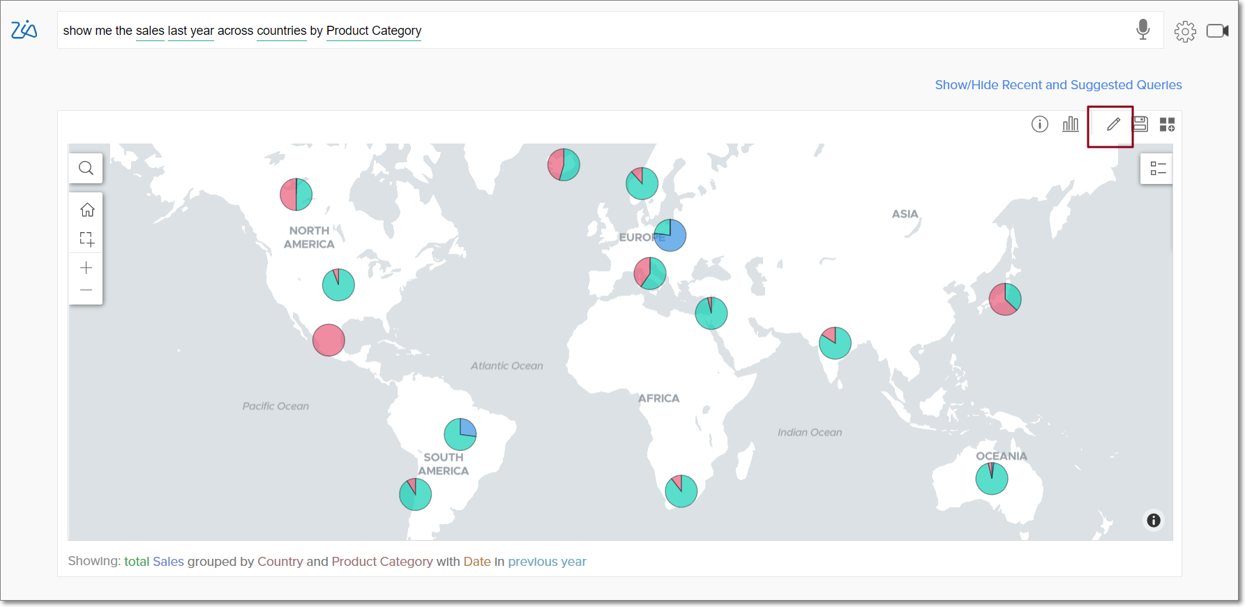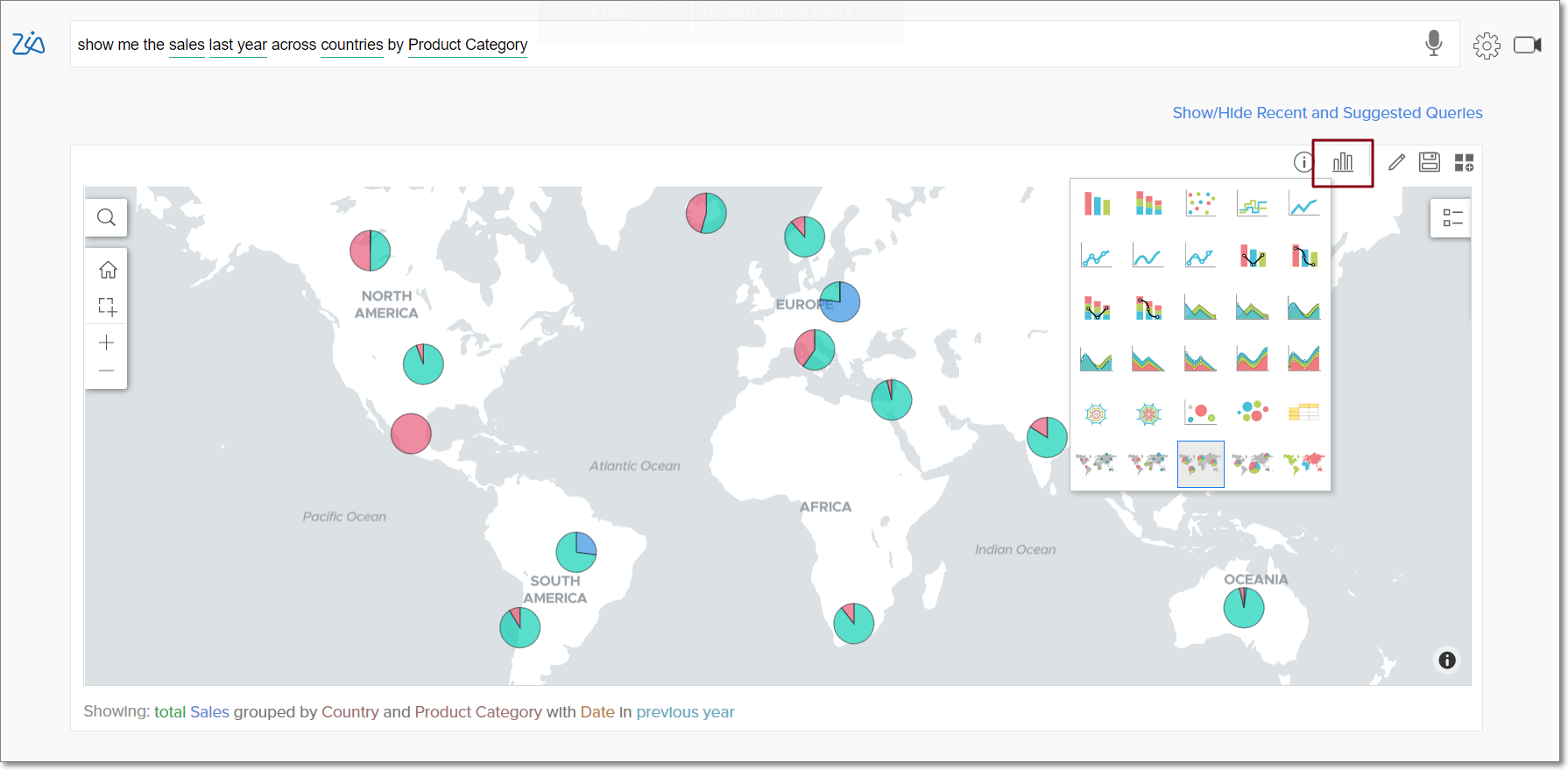 You will also find a list of Recent Questions and Suggested Questions for your workspace. You can easily generate reports by clicking these questions.