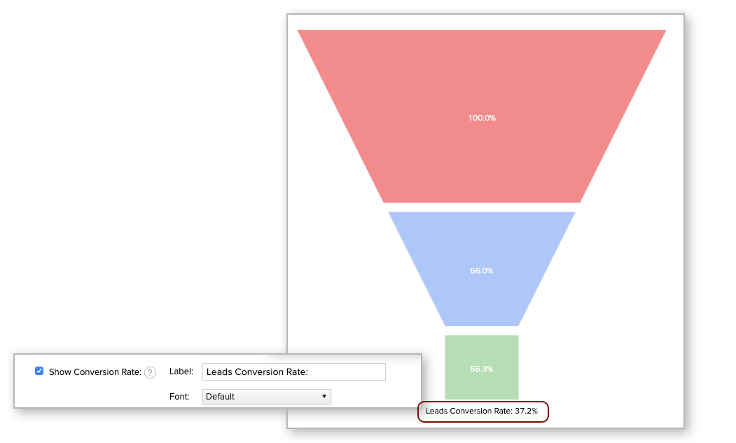 Select this to display the conversion rate of the funnel in percentage, by comparing the value of the last slice with the first slice in the funnel.